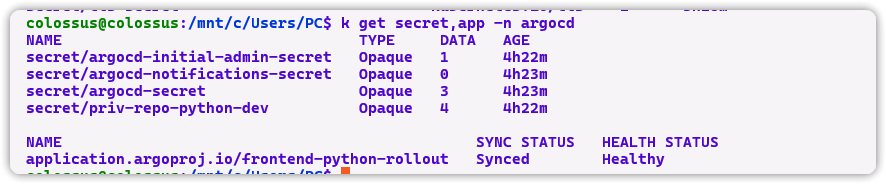 In this step, we containerize our application, push it to the registry, and commit the updated tags to our release manifests. We don’t interact with the production cluster directly; instead, Argo CD is in control and ensures that the desired state (our release repo with newly updated tags) matches the application running in production.